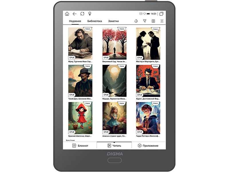 DIGMA P6 оснащена 6-дюймовым цветным сенсорным экраном E Ink Kaleido с разрешением 1448×1072 пикселей и поддержкой до 4096 цветов и оттенков, что удобно для чтения иллюстрированного или цветного контента: комиксов, детских книг, учебников, научных пособий, справочников и бизнес-литературы.